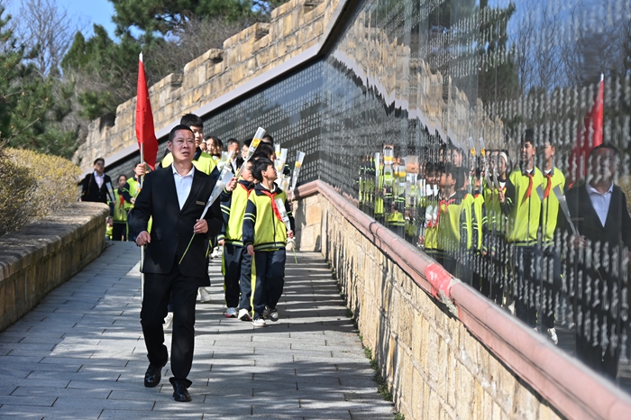 他们驻足烈士墓碑前,凝神聆听学校老师讲述百团大战的峥嵘往事,认真倾听学生代表朗诵写给英烈的致敬诗篇,以赤诚之声开启穿越时空的对话穿越山海,那段浴血奋战的峥嵘岁月在耳畔缓缓流淌,英烈们不畏牺牲、奋勇抗争的英雄壮举,深深镌刻进每一位师生的心底。