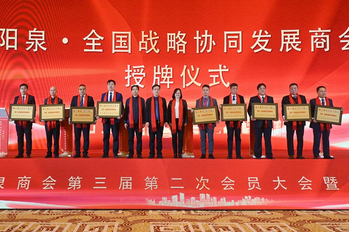 在签约授牌环节,“阳泉·全国战略协同发展商会”正式签约,与会领导为各签约商会授牌,标志着各商会合作进入制度化、常态化新阶段。