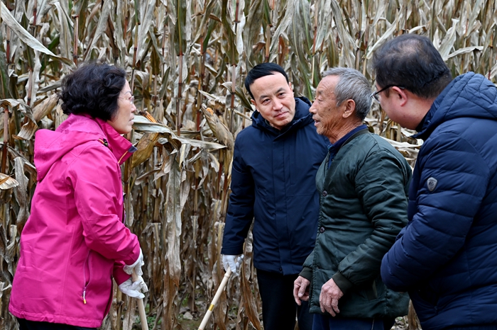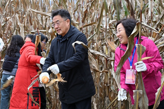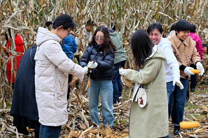 泥泞田间践初心,抢收护粮暖民心。在进圭村孤寡老人的玉米地中,参与活动的干部职工手持镰刀迅速就位,全力投入秋粮抢收。大家分工协作、干劲十足,或弯腰弓背、挥镰割秆,或蹲在田间、熟练剥除苞叶,用实干帮农户抢农时、保收成,确保秋粮顺利归仓。