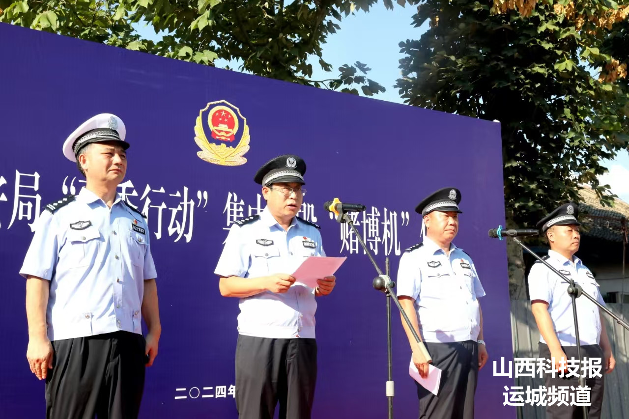 山西科技报运城讯 8月13日,在山西省运城市夏县公安局集中销毁″打烟捕鱼赌博机"现场传出振奋人心的消息:该局在今年严打赌博违法犯罪″夏季行动"中,共查处赌博刑事案件8起,行政案件13起,刑事、行政拘留涉赌违法人员60余人,收缴其中统一销毁″打烟捕鱼赌博机"24台,极大地震慑了赌博类违法犯罪行为,为构建幸福家庭、和谐社会、助推夏县经济高质量发展做出了突出贡献。